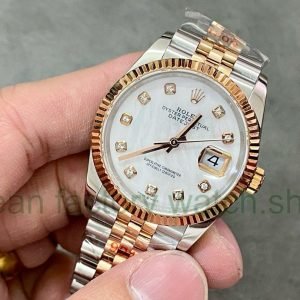 GM Factory Rolex Datejust 126231-0021 36mm Half Rose Gold Diamond Mope Mother Of Pearl Dial Jubilee