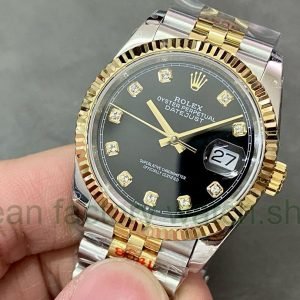 GM Factory Rolex Datejust 126233-0021 36mm Half Yellow Gold Diamond Mop Black Dial Jubilee