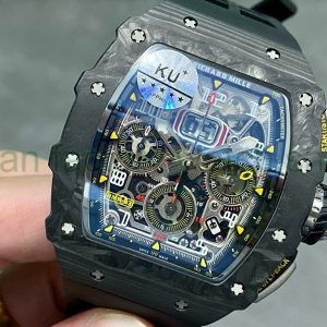 KU Factory Richard Mille RM11-03 44.5mm Carbon Fiber Black Rubber Strap Skeletonized Dial