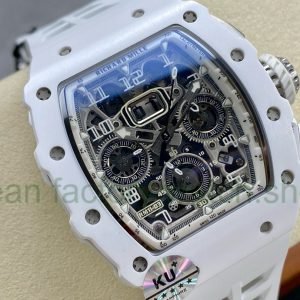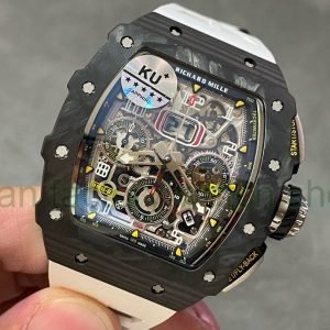 KU Factory Richard Mille RM11-03 44.5mm Carbon Fiber White Rubber Strap Skeletonized Dial