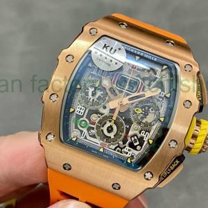 KU Factory Richard Mille RM11-03 44.5mm Rose Gold Orange Rubber Strap Skeletonized Dial