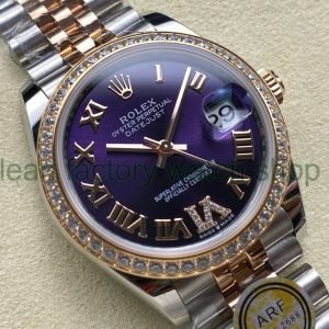ARF Factory Counterweight Rolex Datejust 278381RBR 31mm Rose Gold Diamond Bezel Purple Dial Jubilee