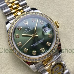 ARF Factory Counterweight Rolex Datejust 278383RBR-0030 31mm Yellow Gold Diamond Bezel Green Dial Jubilee