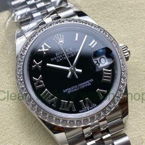ARF Factory Counterweight Rolex Datejust 278384RBR 0001 31mm Diamond Bezel Roman Numerals Black Dial 6 Clean Factory Watch