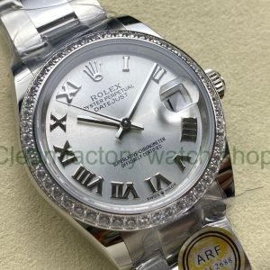 ARF Factory Counterweight Rolex Datejust 278384RBR 31mm Diamond Bezel Roman Numerals Silver Dial 5 Clean Factory Watch