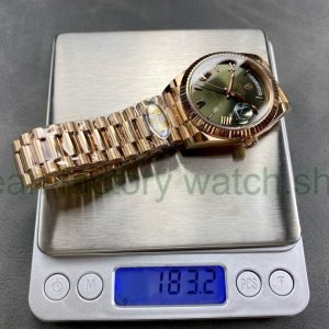 ARF Factory Counterweight Rolex Day-Date 228235-0025 40mm Full Rose Gold Roman Numerals Olive Green Dial
