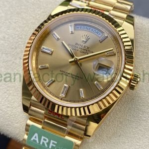 ARF Factory Counterweight Rolex Day-Date 228238-0005 40mm Full Yellow Gold Diamond Baguette Champagne Dial