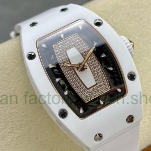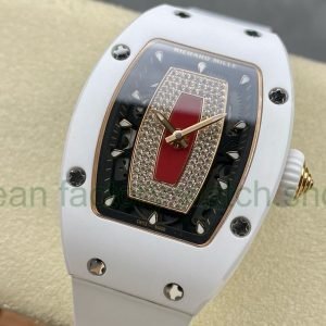 BBA Factory Richard Mille RM07 31.4mm Diamond&White Gold Red Rubber Strap Skeletonized Black Dial