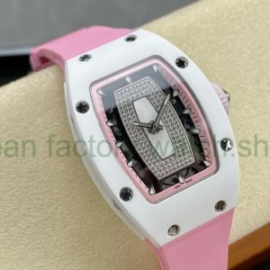 BBA Factory Richard Mille RM07 31.4mm Titanium&Carbon Fiber White Rubber Strap Skeletonized Pink Dial