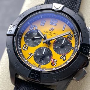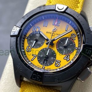 BLS Factory Breitling Avenger B01 Chronograph SB0147101I1X2 44mm Steel Black Calf Skin Strap Arabic Numerals Yellow Dial