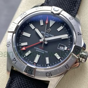 BLS Factory Breitling Avenger A323201A1B1X1 44mm Steel Calf Skin Strap Red GMT Needle Black Dial