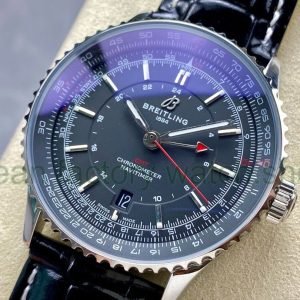 BLS Factory Breitling Navitimer GMT A32310251B1P1 41mm Steel Leather Strap Black Dial