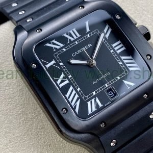 THB Factory Cartier Santos WSSA0039 40mm Steel Rubber Strap Roman Numerals Black Dial