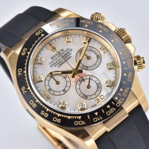 Clean Factory Rolex Daytona 116518LN 40MM Yellow Gold Rubber Strap Diamond Mop Mother Of Pearl Dial