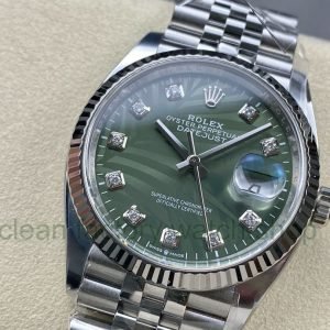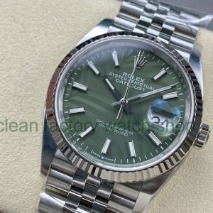 Clean Factory Rolex Datejust 126234-0055 36MM Full 904L Diamond Olive Green Palm Motif Dial Jubilee