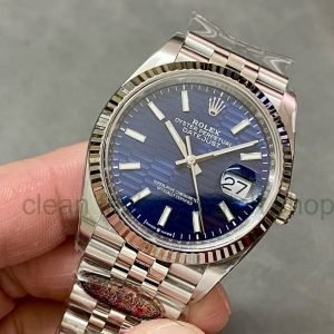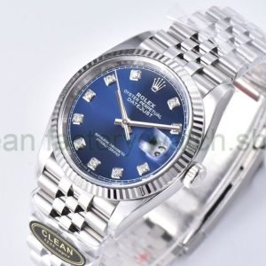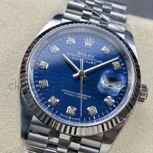 Clean Factory Rolex Datejust 126234-0057 36MM Full 904L Diamond Fluted Motif Blue Dial Jubilee