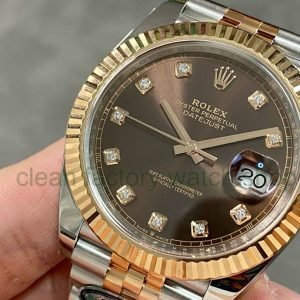 Clean Factory Rolex Datejust 126331-0004 41MM Half Rose Gold Diamond Brown Dial Jubilee