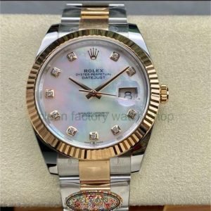 Clean Factory Rolex Datejust 126331 41MM Half Rose Gold Diamond Mother Of Pearl Dial Jubilee