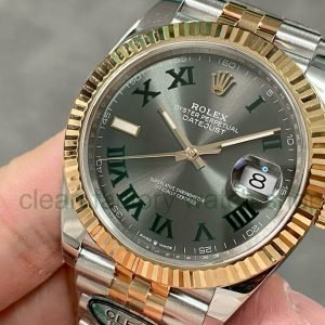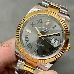 Clean Factory Rolex Datejust 126333-0019 41MM Half Gold Roman Numerals Wimbledon Grey Dial