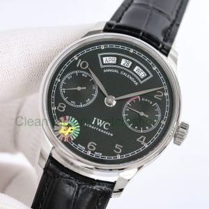 Copy ZF Factory IWC Portuguese Annual Calendar IW503510 44mm Steel Leather Strap Arabic Numerals Black Dial