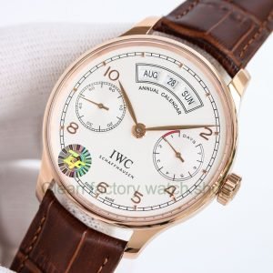 Copy ZF Factory IWC Portuguese Annual Calendar IW503504 44mm Rose Gold Leather Strap Arabic Numerals Silver Dial