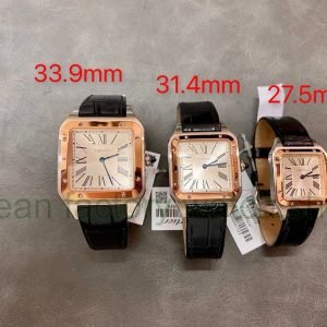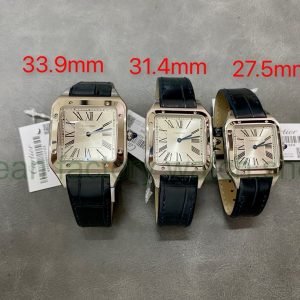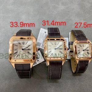 F1 Factory Cartier Santos Dumont WHSA0021 31.4mm Rose Gold Leather Strap Roman Numerals Silver Dial