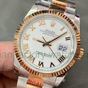 GM Factory Rolex Datejust 126231-0016 36mm Half Rose Gold Roman Numerals White Dial