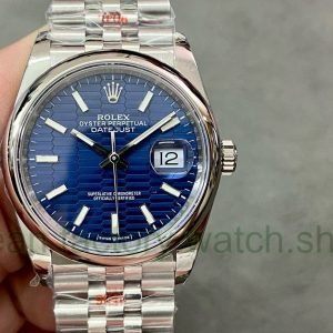 GM Factory Rolex Datejust 126200-0021 36mm White Gold Smooth Bezel Full 904L Fluted Motif Blue Dial Jubilee