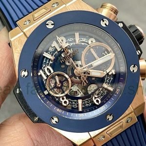 BBF Factory Hublot Big Bang Unico 441.OL.5181.RX 42mm Rose Gold Rubber Strap Skeletonized Blue Dial
