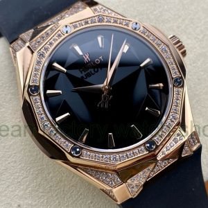 HB Factory Hublot Classic Fusion 550.OS.1800.RX.1604.ORL19 40mm Diamond&Rose Gold Black Rubber Strap Black Dial