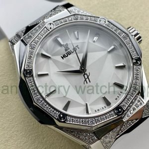 HB Factory Hublot Classic Fusion 550.NS.2200.RW.1804.ORL20 40mm Diamond&Steel White Rubber Strap White Dial