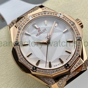 HB Factory Hublot Classic Fusion 550.OS.2200.RW.1804.ORL20 40mm Diamond&Rose Gold White Rubber Strap White Dial