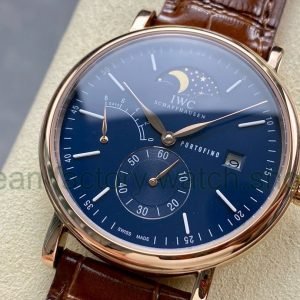 TWA Factory IWC Portofino Hand-Wound IW516407 45mm Rose Gold Needle Rose Gold Brown Leather Strap Blue Dial
