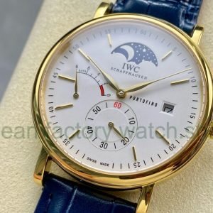 TWA Factory IWC Portofino Hand-Wound IW516409 45mm Gold Needle Gold Blue Leather Strap White Dial