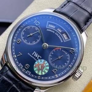 ZF Factory IWC Portuguese Annual Calendar IW503502 44mm Steel Leather Strap Arabic Numerals Blue Dial