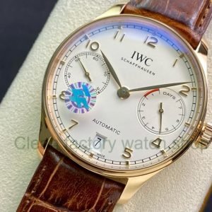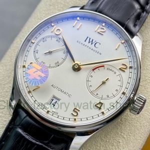 ZF Factory IWC Portuguese Automatic IW500702 42mm Rose Gold Leather Strap Silver Arabic Numerals Dial