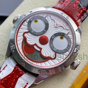 TW Russian Clown [The highest version of true functional quick-adjustment moon phase] is synchronized with the original version and achieves the greatest success [without any blind spots] fully upgraded [“breakthrough” watch industry annual masterpiece] Konstantin Chaykin, Chairman of AHCI Independent Watchmaking Association Master’s ingenuity [technical breakthrough] The dial has a clown face with constantly changing expressions, rolling eyes, crazy face, and a red tongue sticking out. The expression changes very much. The two eyes indicate minutes and hours respectively, and the moon phase display. (Smiling face), with more than 20,000 expression changes every day, unique design elements of humorous nature [Case diameter 42mm , stable walking time and strong quality. The fine CNC grinding of the overall details of the circle and the sides took time and labor to adjust the mold many times to ensure that the charm and feel are comparable to the original ones and satisfy all your beautiful feelings for the Russian clown’s “smiling face”.