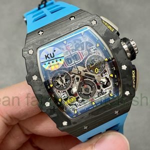 KU Factory Richard Mille RM 011-03 44.5mm Carbon Fiber Blue Rubber Strap Arabic Numerals Skeletonized Dial