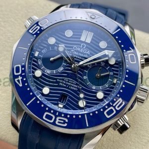 N1 Factory Omega Seamaster Diver 300M Co-Axial Chronometer Chronograph 210.30.44.51.03.001 44mm Steel Blue Rubber Strap Blue Dial