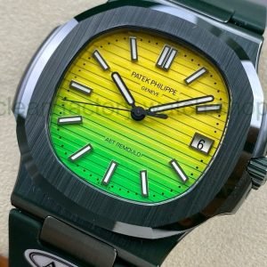 AMG Factory Customer Made Patek Philippe Nautilus PP5711 40mm Ceramics Dark Green Rubber Strap Yellow&Green Dial