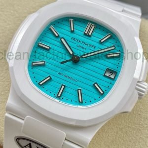 AMG Factory Customer Made Patek Philippe Nautilus PP5711 40mm Ceramics White Rubber Strap Sky Blue Dial