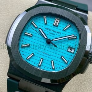 AMG Factory Customer Made Patek Philippe Nautilus PP5711 40mm Ceramics Dark Green Rubber Strap Sky Blue Dial