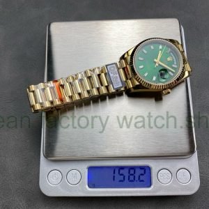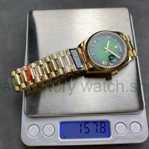 QF Factory Counterweight Rolex Day-Date 36 128238-0118 36mm Full Yellow Gold Roman Numerals Green Dial