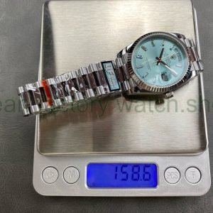 QF Factory Counterweight Rolex Day-Date 36 128236-0018 36mm Full 904L Roman Numerals Ice Blue Dial