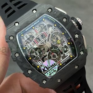 KV Factory Richard Mille RM011-03 44.5mm Carbon Fiber, Black Rubber Strap Arabic Numerals Skeletonized Dial