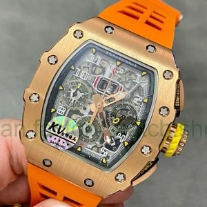 KV Factory Richard Mille RM011-03 44.5mm Rose Gold Orange Rubber Strap Arabic Numerals Skeletonized Dial