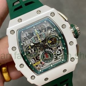 KV Factory Richard Mille RM011-03 CA ATZ 44.5mm Ceramic Green Rubber Strap Skeletonized Green Dial