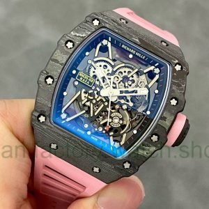 T+ Factory Richard Mille RM 035 44.5mm Carbon Fiber Pink Rubber Strap Skeletonized Dial