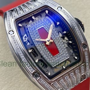 ZF Factory Richard Mille RM07 31.4mm Diamond White Gold Red Rubber Strap Skeletonized Black Dial