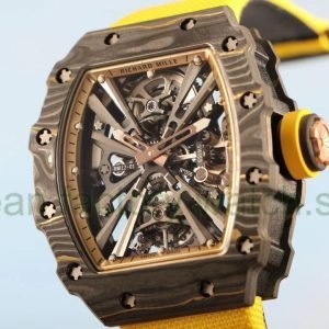 RM Factory Richard Mille RM12-01 39mm Carbon Fiber Yellow Canvas Strap Skeletonized Rose Gold Dial